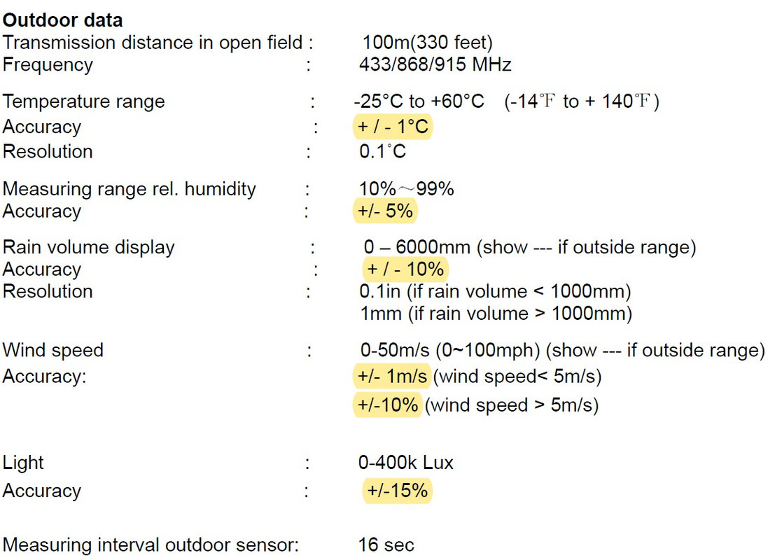 But we need to take into account siting issues which can be significant when chasing accuracy. The weather station may be perfectly calibrated, but still be sending unrepresentative information. The user might install it in a back yard shielded by trees and the house itself. So the wind speed is way less than an official station. Or the unit might be sitting 3 feet above a corrugated iron roof radiating heat and overstating the temp.
