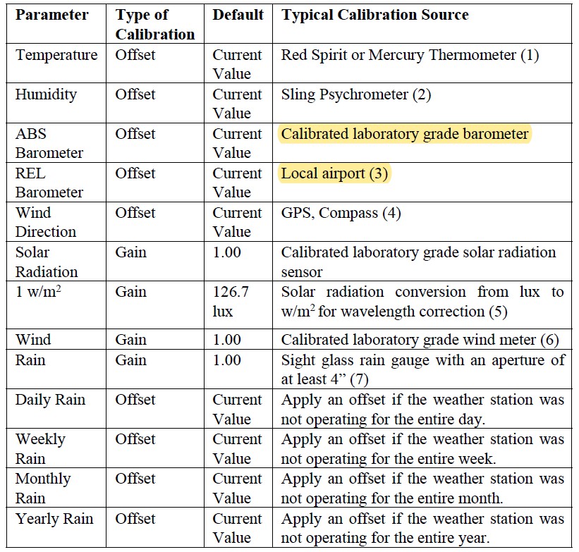 I am with WF and don't think they should need much calibration out of the box. The temperture/humidity sensor chip should be pretty accurate. If you don't adjust for altitude, then the pressure will reflect absolute and not sea level. The outliers in the regard should be pretty obvious. Rainfall seems to be the only one that is somewhat dubious and wind will be markedly effected by poor siting.